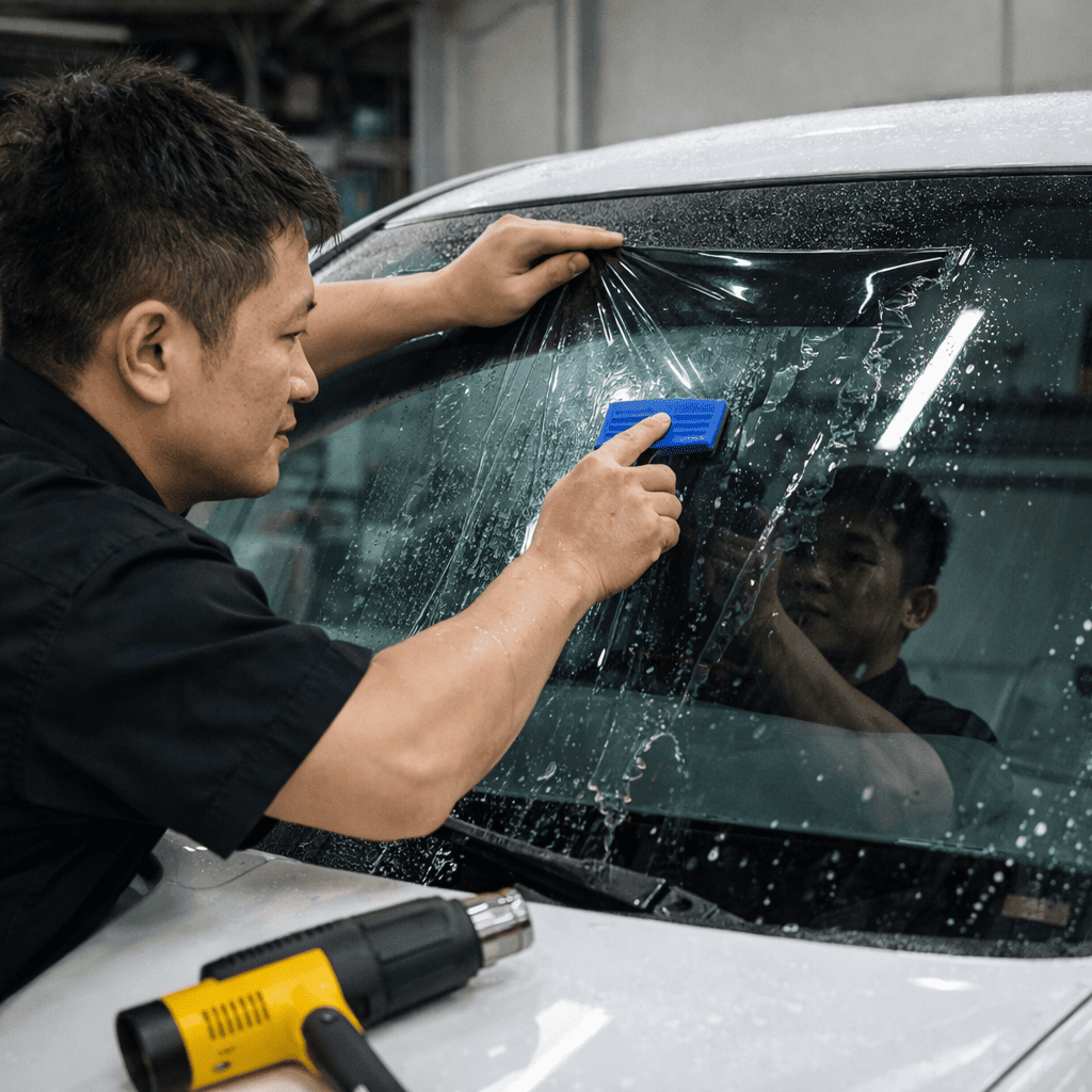 第一,能專業安裝就不要自己冒險貼。汽車玻璃有弧度,施工時還要處理裁切、熱塑成型、刮水、邊角收尾與除塵,任何一個步驟不到位,都可能影響外觀與壽命。尤其前擋最難貼,也最不能出錯。